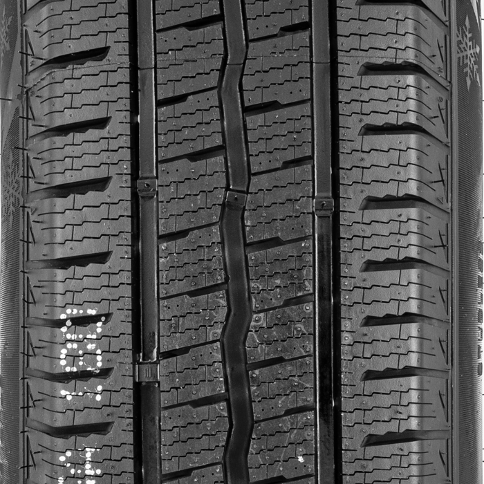 De Compasal WinterBlazer VAN is in de eerste plaats een product voor winterse omstandigheden wanneer sneeuw, modder of water zich op de weg kunnen opstapelen. Een goed loopvlakreinigingssysteem is daarom erg belangrijk. De brede omtrekgroeven in dit model zijn hiervoor verantwoordelijk en transporteren het vuil dat zich onder de wielen ophoopt, terwijl de geprofileerde dwarskanalen voorkomen dat modder het loopvlak blokkeert. Het dichte netwerk van gegolfde lamellen speelt ook een belangrijke rol want ze grijpen de poedersneeuw en verbeteren de grip van de banden in typische winterse weersomstandigheden.